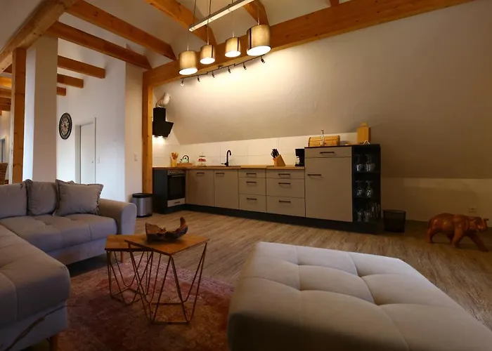 Dit 1-badkamer appartement bestaat uit een terras en een zitruimte en is voorzien van een bank, evenals moderne voorzieningen zoals een flatscreen TV met satellietzenders. Am Grunen Meer heeft 2 slaapkamers met dikke donzen kussens. 1 badkamer met een apart toilet en een douche, evenals een haardroger en handdoeken wordt aangeboden.